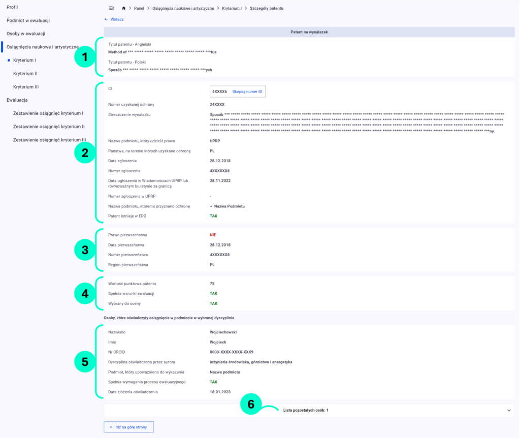 - czy jest wybrany do oceny (TAK/NIE) – zestawienie najwyżej punktowanych praw ochronnych w limicie N będzie oznaczone przez SEDN. Koordynator dyscypliny i kierownik podmiotu mogą zmienić zaproponowane zestawienie na własne.